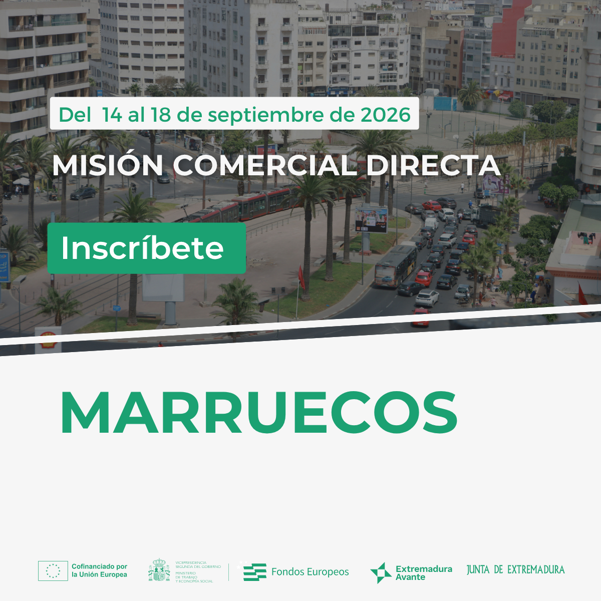Extremadura Avante, con el apoyo de la Junta de Extremadura, organiza la presencia de empresas extremeñas en la Misión Comercial Directa Marruecos 2026. La acción comercial se desarrollará en Casablanca y alrededores, del 14 al 18 de septiembre de 2026. Las empresas interesadas podrán presentar su solicitud desde el día...