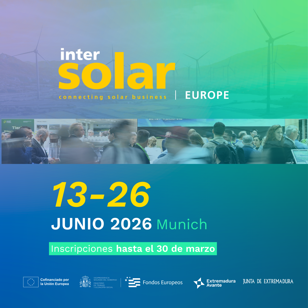 Extremadura Avante estará presente con un stand de representación autonómica para la promoción del sector energético y de energías renovables de Extremadura, en la próxima edición de la feria internacional Intersolar Europe, que tendrá lugar en Múnich (Alemania) del 23 al 25 de junio de 2026.La presencia estratégica comercial en... Leer Más...