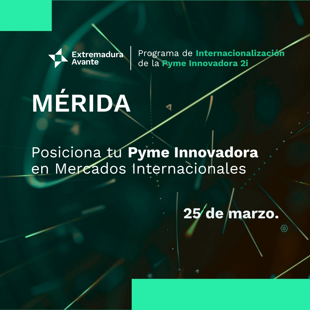 Cómo crecer más y mejor gracias a la internacionalización de tu innovación. Extremadura Avante, a través del Programa de Internacionalización de la Pyme Innovadora (2I), organiza la jornada Posiciona tu Pyme en Mercados Internacionales, que tendrá lugar el próximo 24 de marzo de 2026, en la sala Centrifugadora del Edificio... Leer Más...